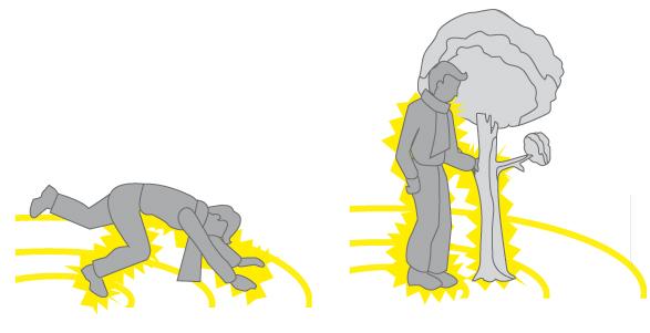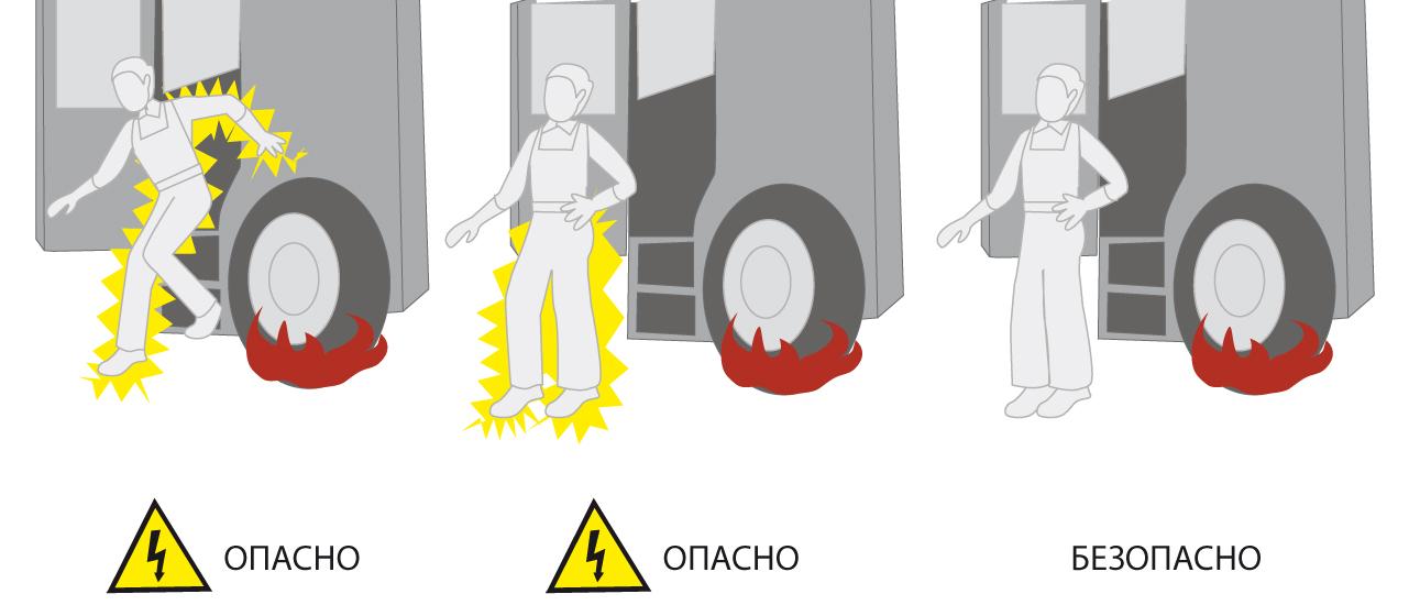 При попадании под шаговое напряжение мышцы ног непроизвольно судорожно сокращаются, пострадавший падает на землю. Ток начинает проходить между новыми точками опоры — в том числе от рук к ногам, что чревато поражением внутренних органов и смертельным исходом.