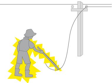 Невозможно определить степень опасности оборванного провода. В отличие от утечки газа или пожара, электричество не имеет видимых признаков присутствия опасности или запаха, которые могли бы вызвать беспокойство. Человек узнает о том, что попал в зону воздействия электрического тока, когда уже слишком поздно что-либо предпринимать. Электрический ток поражает внезапно и мгновенно.
