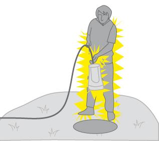 Земля, особенно влажная, - отличный проводник электрического тока. Поэтому категорически запрещено пользоваться вне помещений электроплитками, бытовыми электроприборами, которые запитаны от электрической сети, в т.ч. чайниками, утюгами, переносными светильниками.